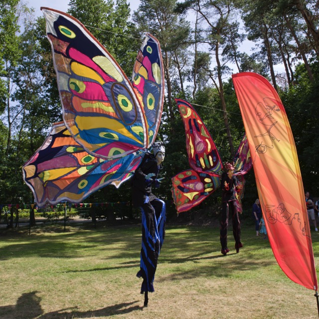 Waldwesen mit "Riesen-Schmetterlingen" Stelzen- und Maskentheater